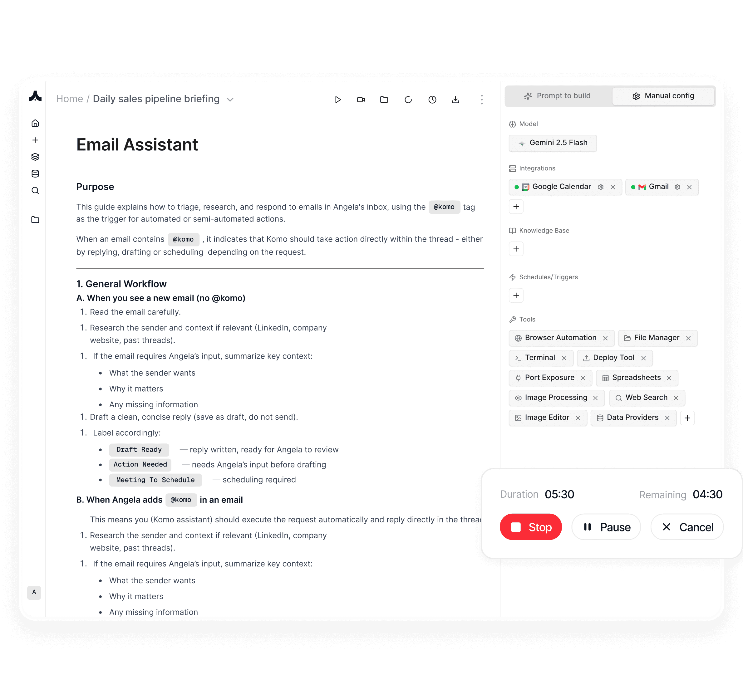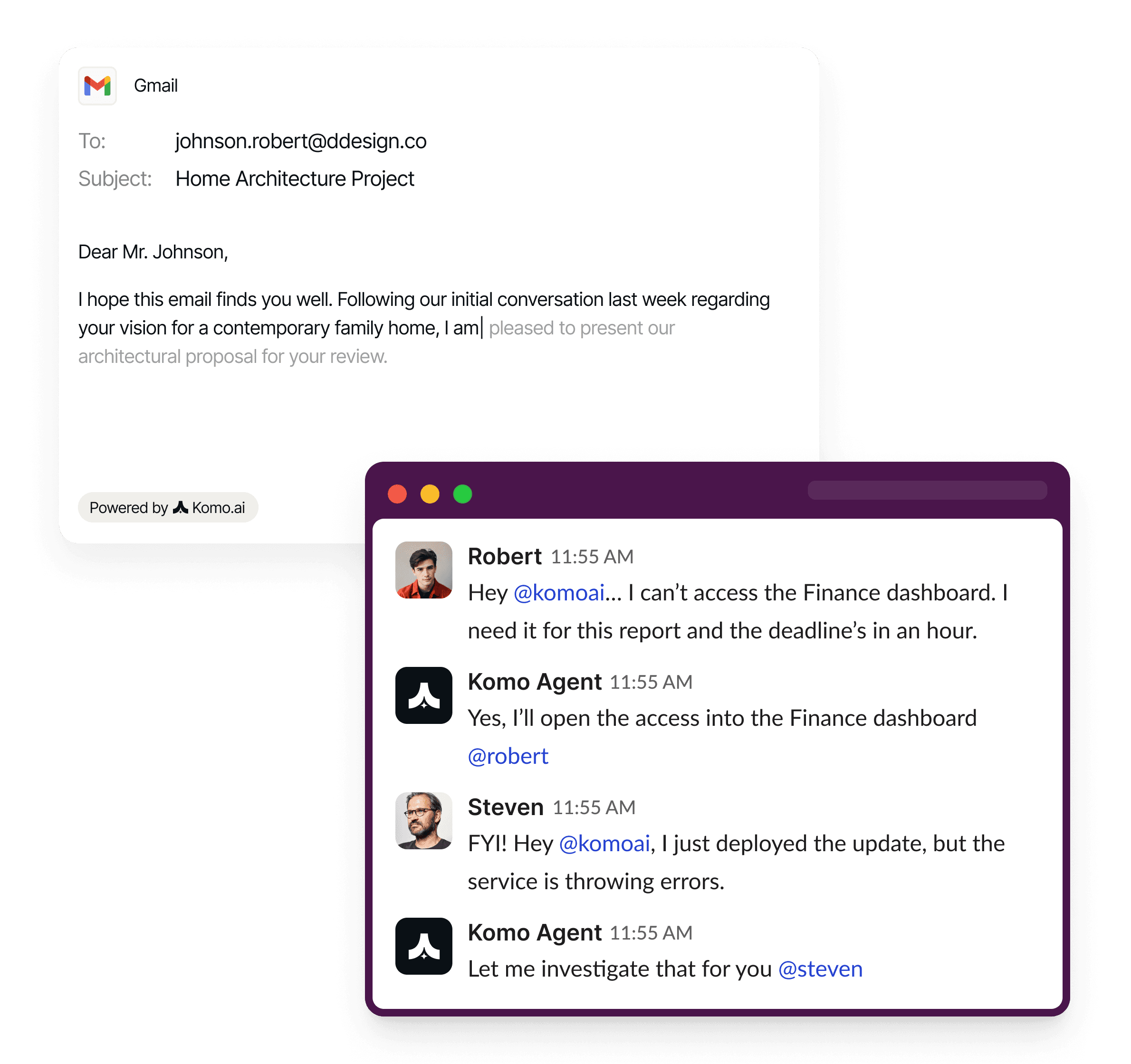 Komo is in your mailbox sorting emails, a teammate in Slack, on devices in factories, and anywhere else that needs help.