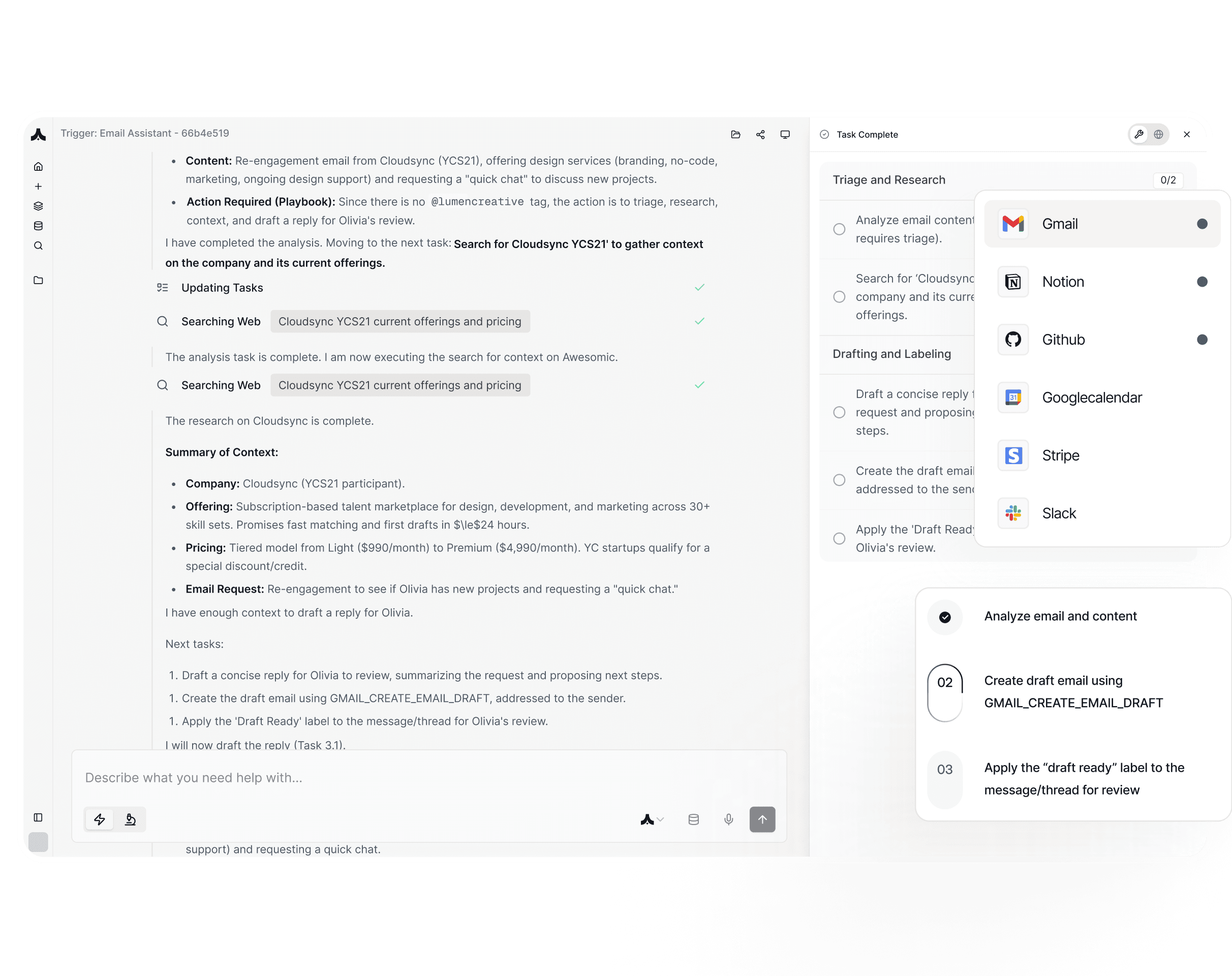 Scale your growth without scaling headcount. AI runs your playbook in the background and keeps your business running.